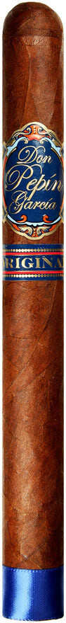 The Don Pepin Garcia Original Delicias, also known as Don Pepin Blue Label, is one of those cigars that opened the door to success for legendary father and son cigar makers Jose and Jaime Garcia. These full-bodied cigars have an oily reddish-brown Nicaraguan Corojo Oscuro wrapper, underneath which are well-aged and highly fermented Nicaragua long fillers and Criollo binders. They come in classy handcrafted flip-top cedar boxes of 24. Add Don Pepin Blue label Delicias cigars to your humidor today!