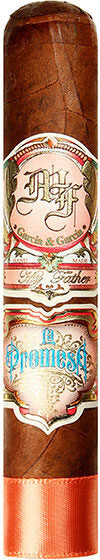 My Father La Promesa Petite is hand rolled by the legendary cigar maker himself using a reddish-brown Ecuadorian Habano Rosado Oscuro wrapper with spicy Nicaragua long fillers and binders from the Gracia family farms. This marriage results in a full-bodied cigar with notes of pepper, chocolate, leather, spices, nuts, and wood that balances off with an oakiness and sweet creaminess. The cigar is medium to full-flavored in flavor with a complex but not overwhelming smoke. The masterpiece is available in five vitolas, each in boxes of 20: Robusto (5 1/2" x 54), Toro (6" x 52), Lancero (7 1/2" x 38), Corona Gorda (5 1/2" x 48), and Petite (4 1/2" x 50).